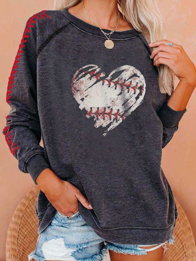 Women's baseball print ripped jeans