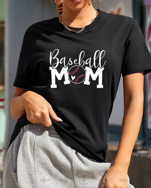 Women's Leopard Baseball mom Print Black Tee
