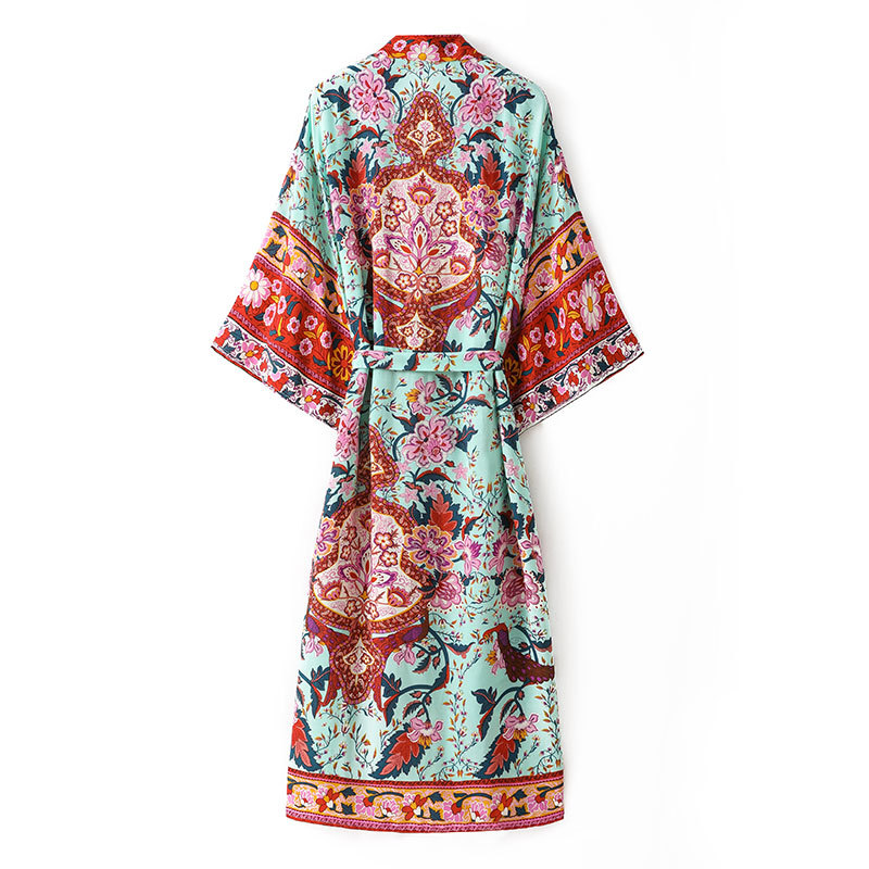 Designer Women's Summer Holiday Dress Retro Printed V-neck Long Dress