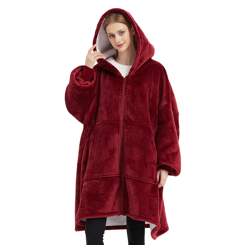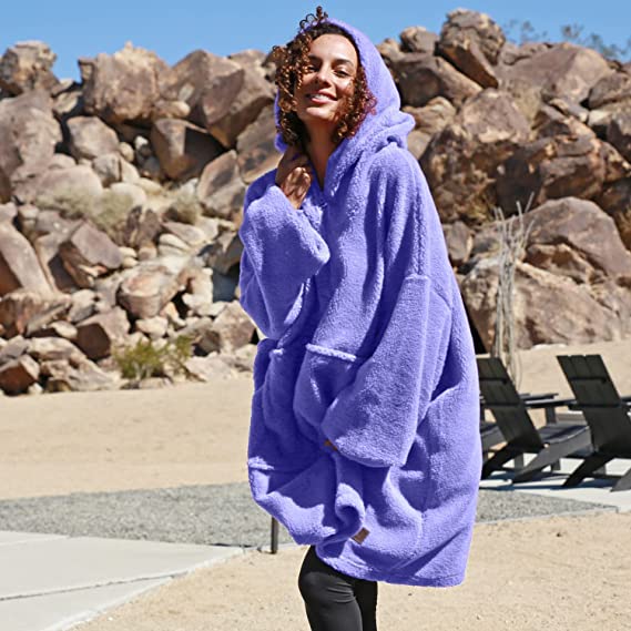Oversized Wearable Blanket Hoodie Sweatshirt, Comfortable Sherpa Lounging Pullover for Adults Women Men