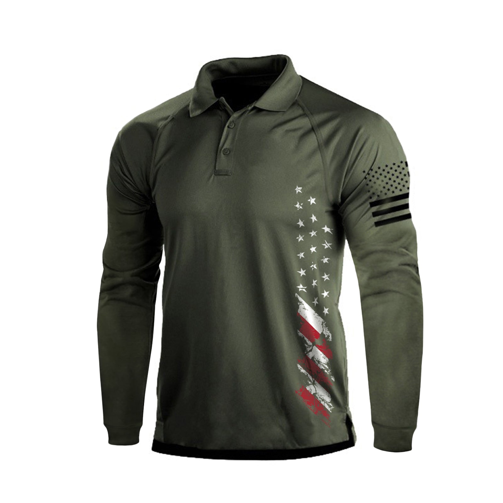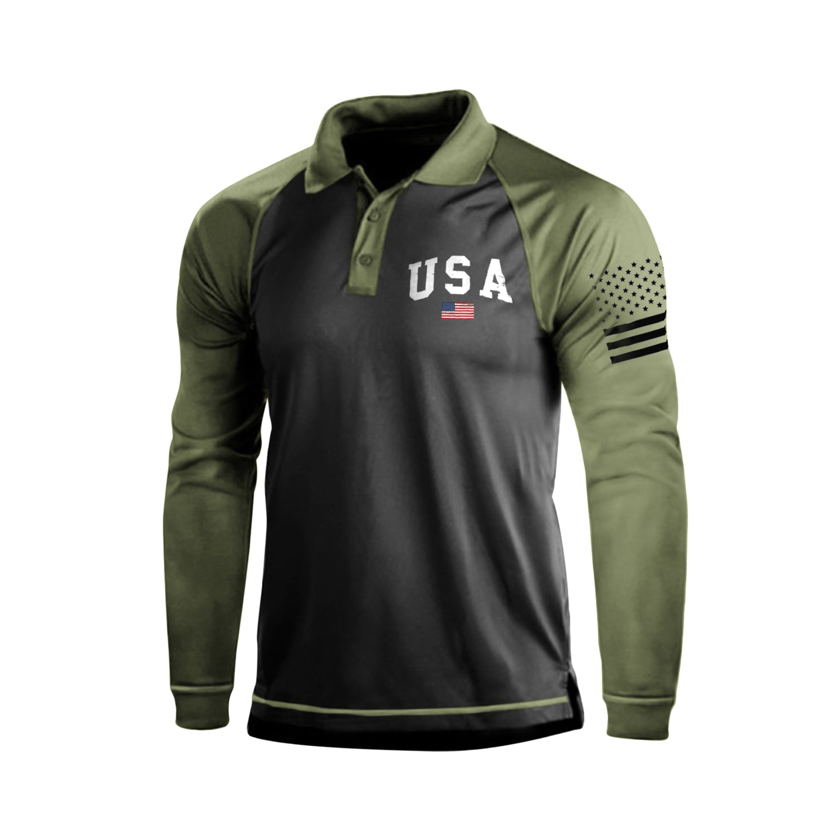 1776 USA FLAG GRAPHIC RAGLAN LONG SLEEVE POLO SHIRT