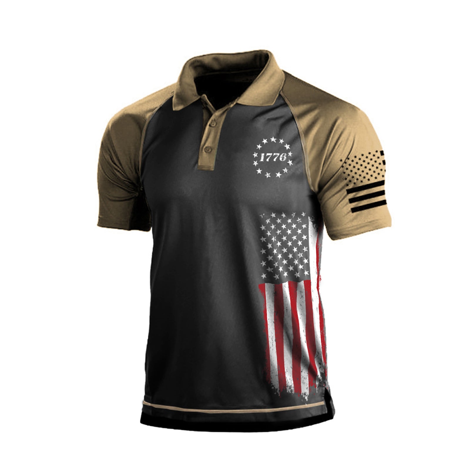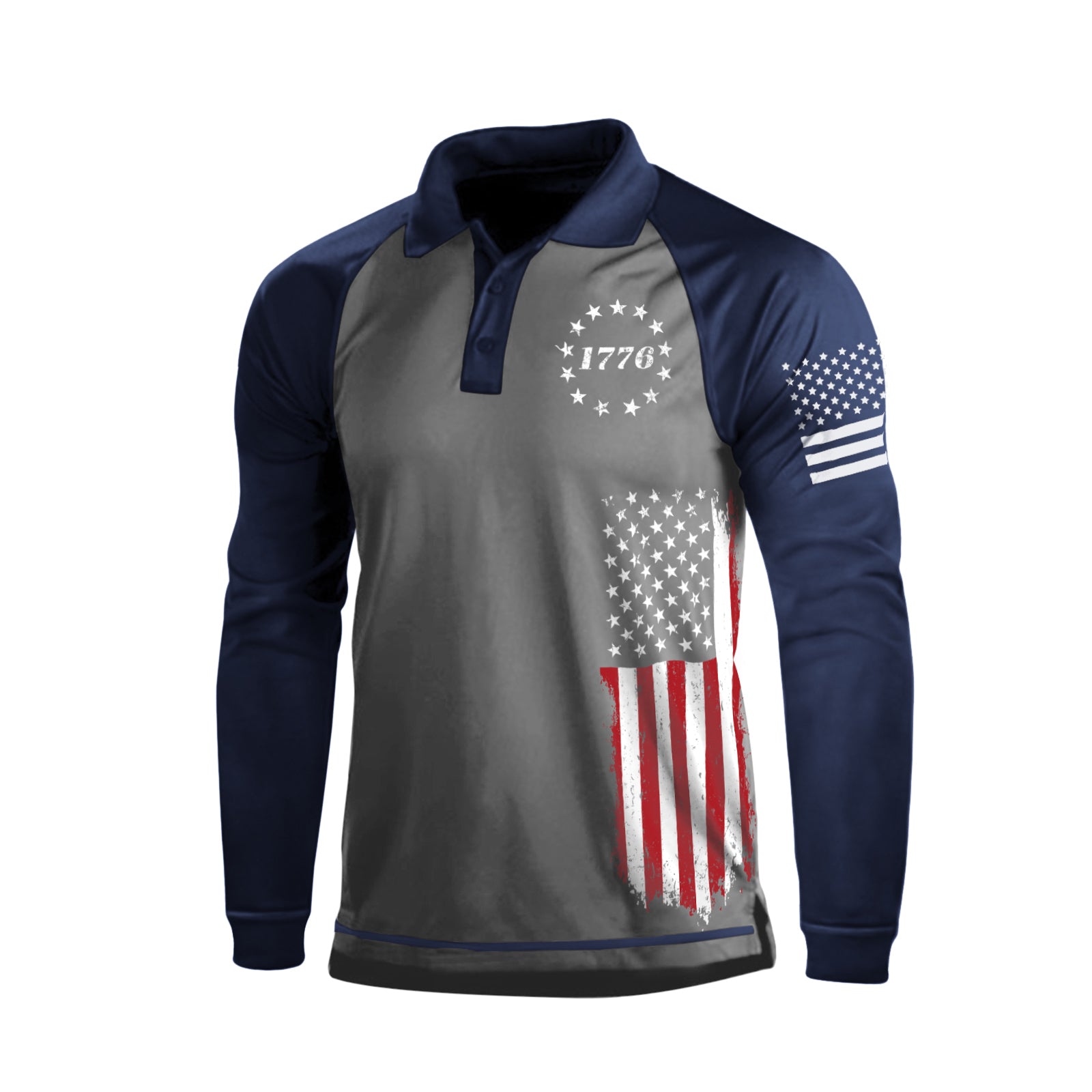 1776 USA FLAG RAGLAN GRAPHIC LONG SLEEVE POLO SHIRT