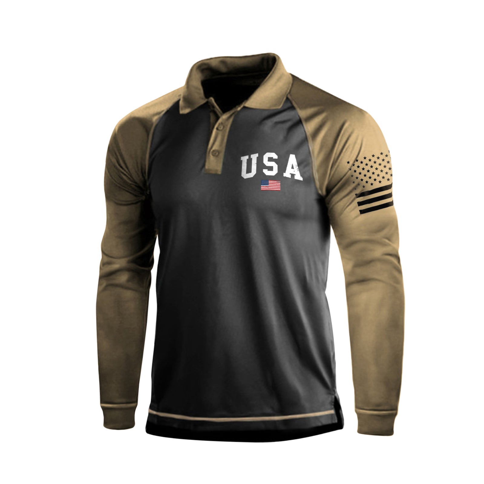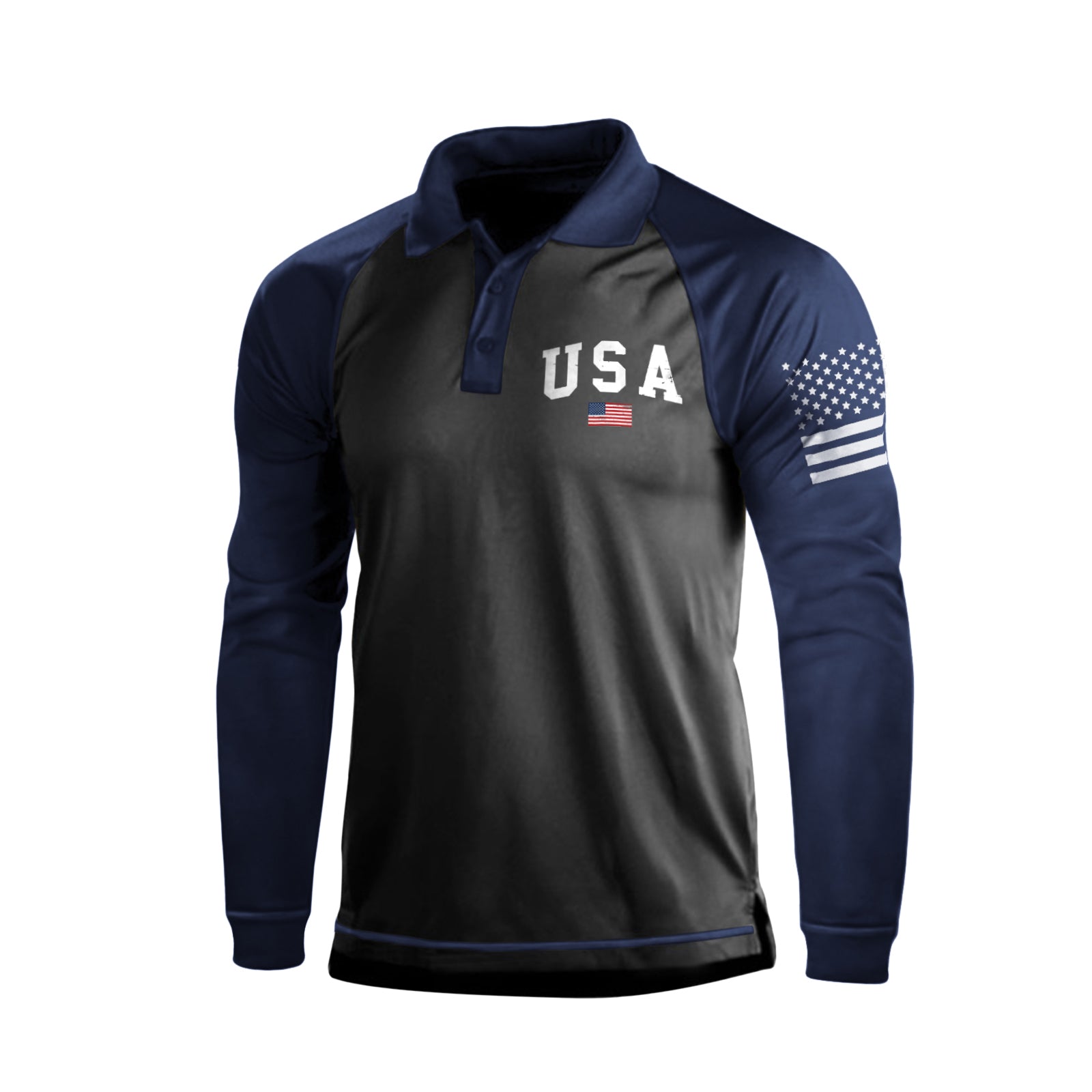USA FLAG GRAPHIC RAGLAN LONG SLEEVE POLO SHIRT