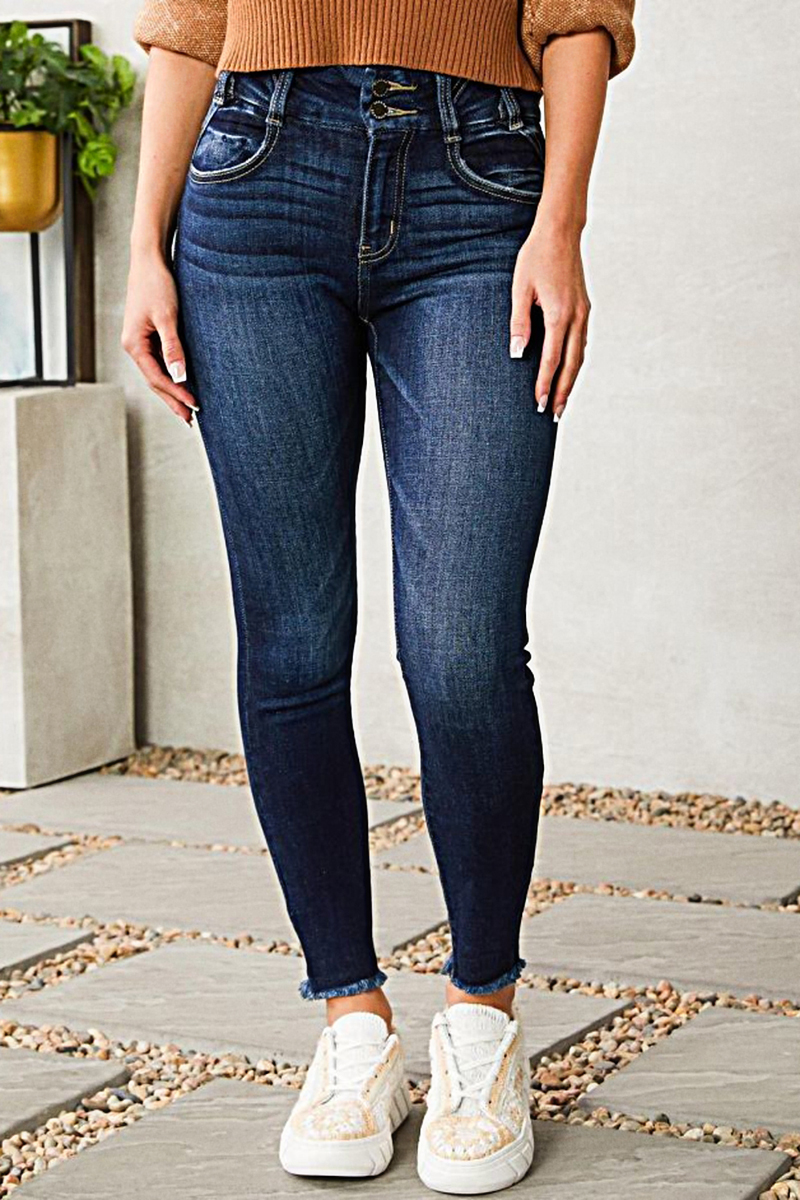 Double Button Zip Pocket Low Waist Pants