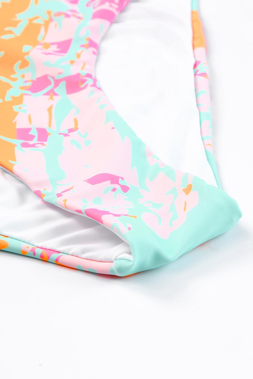 This two-piece bikini swimsuit is unique and eye-catching with abstract wave print