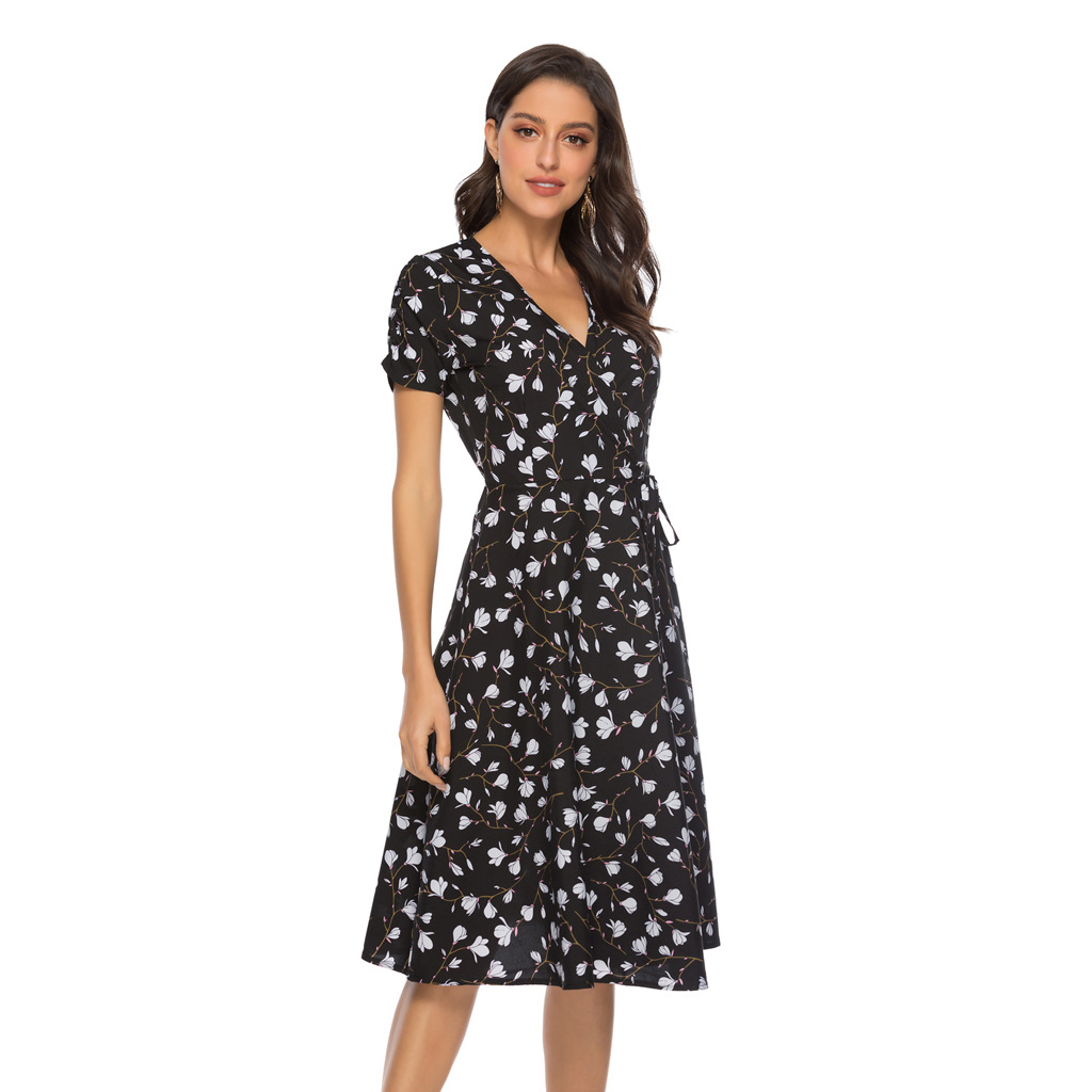 Bohemian Beach Dress Chiffon Printed Large Swing Women