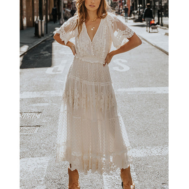 --Material : Polyester --Color : White --Available Size : S,M,L,XL --Style : Boho |