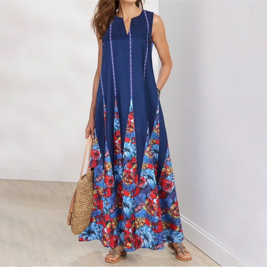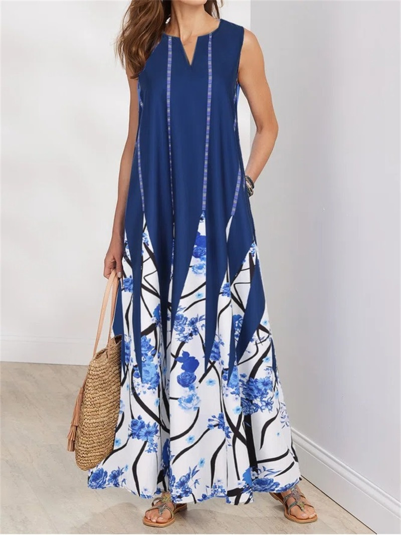 Floral Print V-neck Sleeveless Dress