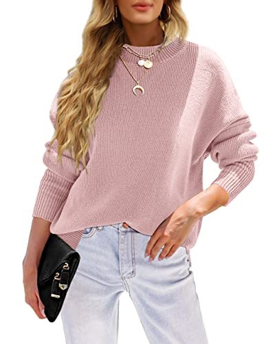 Womens Pullover Sweaters Oversized Long Sleeve Drop Shoulder Side Slit Loose Tunic Sweatshirt Top for Fall Winter