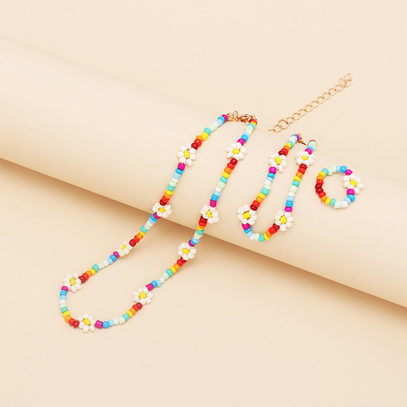 Rainbow rice bead necklace bracelet ring set