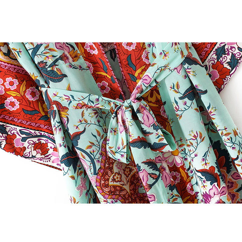 Rayon Printed Cardigan Coat Bohemian Loose Bat Sleeve Dress
