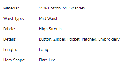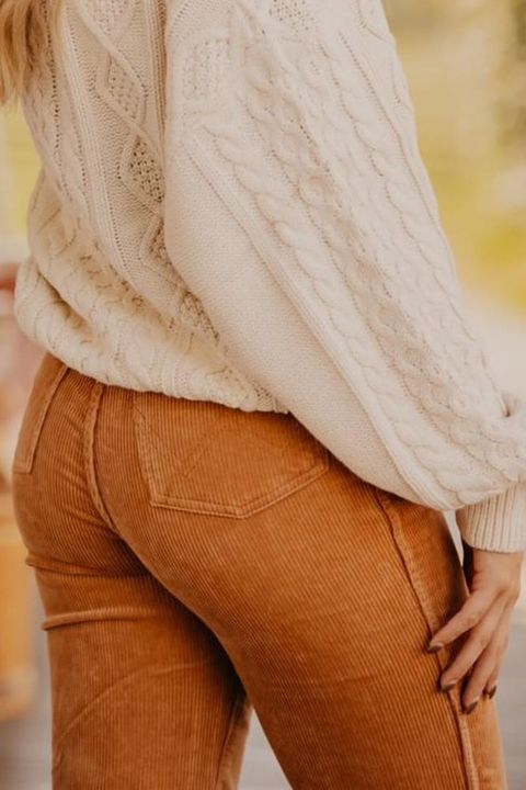 Solid Corduroy Patched Back Mid Waist Flare Pants