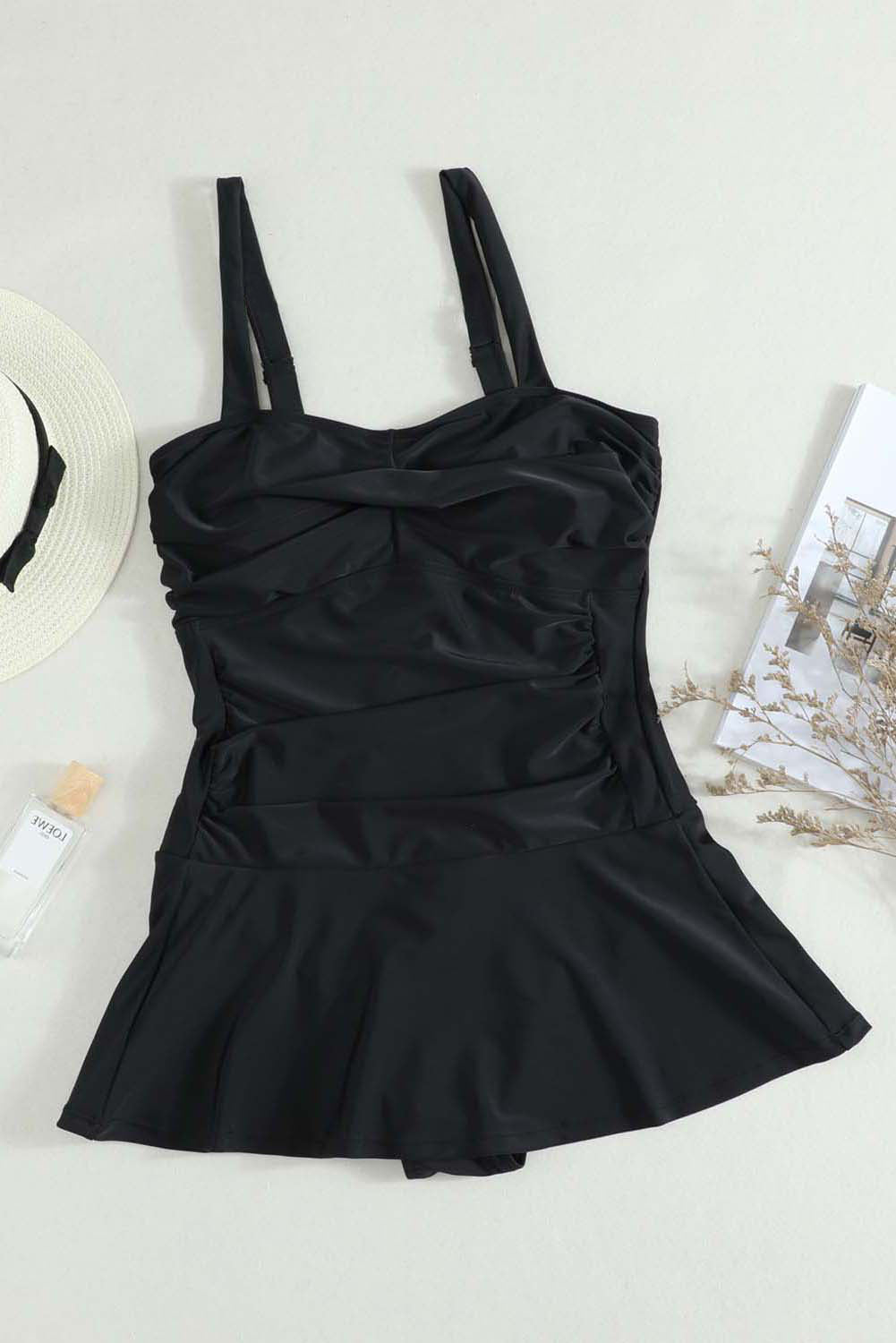 Solid Pleated Flared Basic Active One Pieces Swimsuits Swimwear