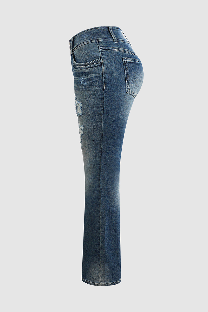 Vintage Low Waist Ripped Button Up Jeans