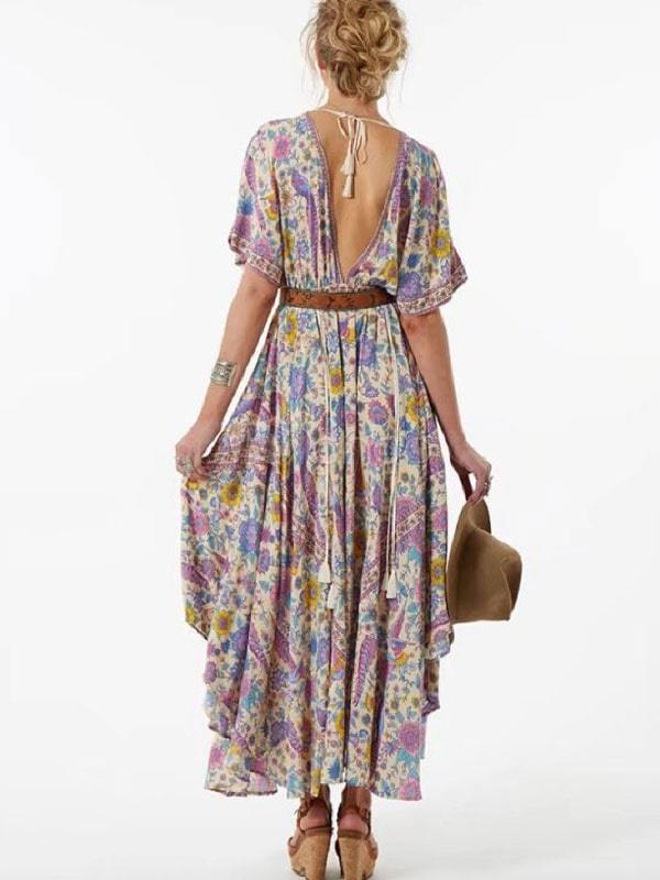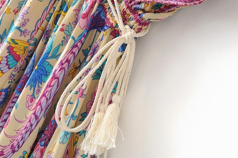 Reflect your soul now with Wild Peacock & Flowers V-Neck Maxi Dress.