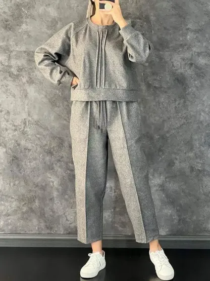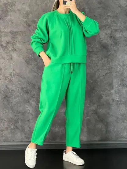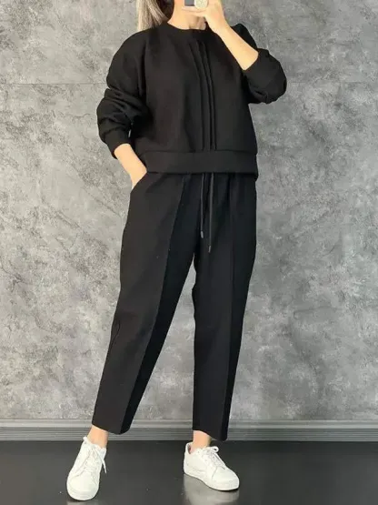 Women's Casual Long Sleeve Sweatshirt Solid Color Suit