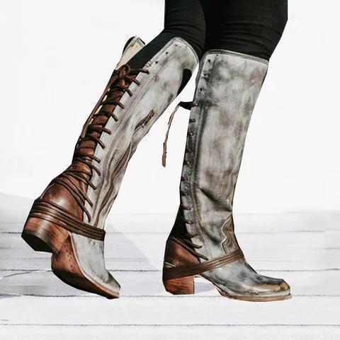 Women Vintage Lace Up Boots European Style Bandage Above Knee Boots
