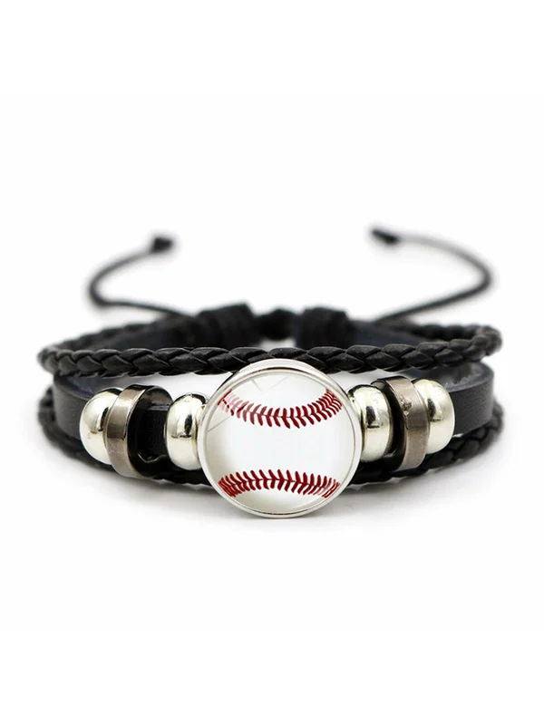 Women's Baseball Leather Braided Adjustable Bracelet