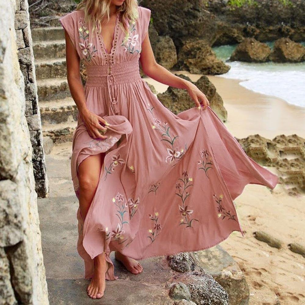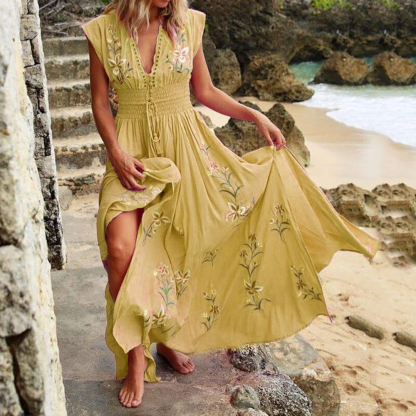 Women's V-Neck Sexy French Beach Boho Print Dress