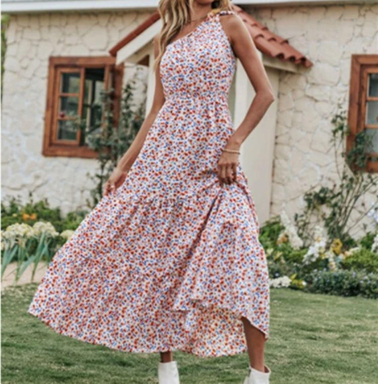 Women Ruffle Hem Ditsy Floral Cami Dress