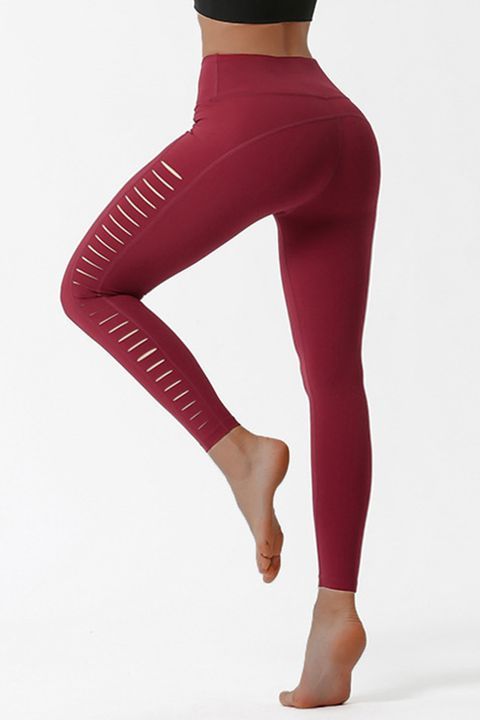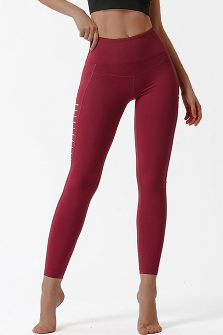 Hollow Out Stitch Trim Sports Leggings