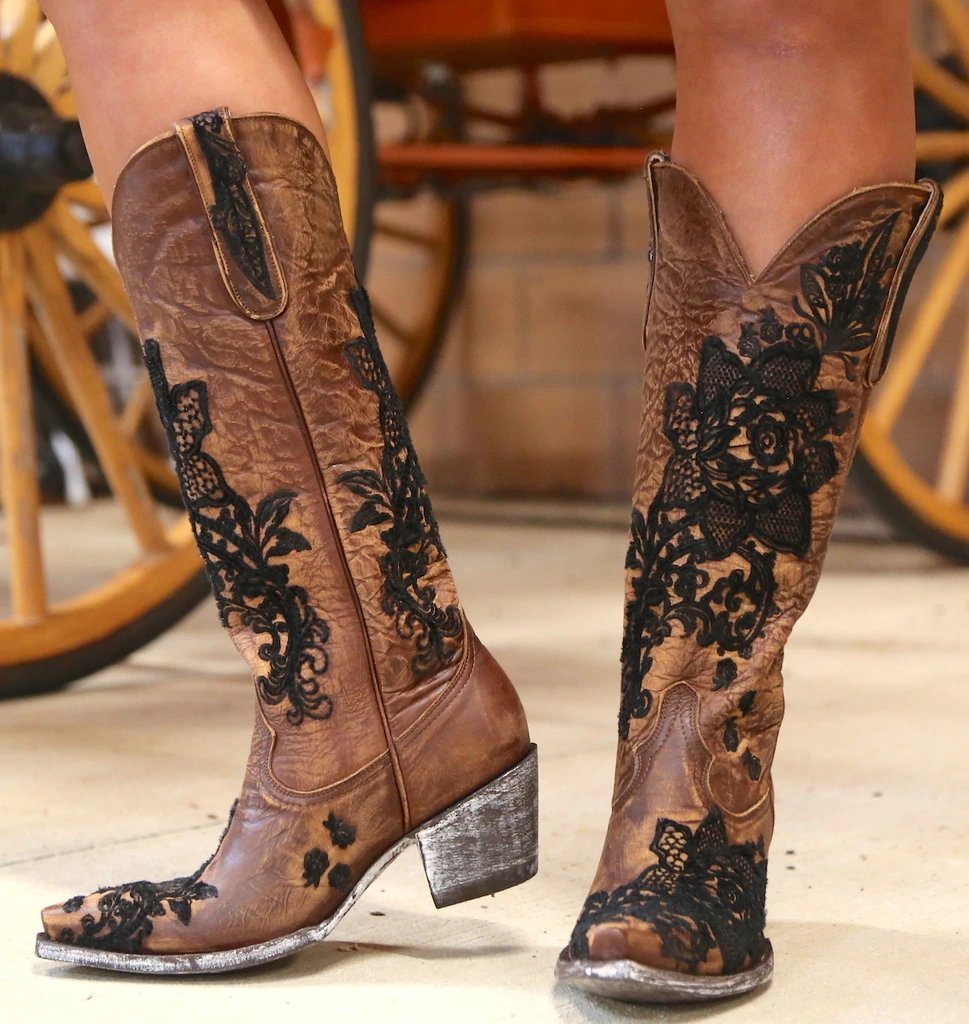 Pointed Toe Floral Slip-On Thread Western Boots