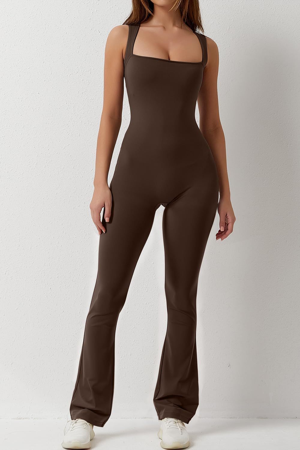 Flare Jumpsuits for Women Strappy Square Neck Bodycon Full Length Long Pants Casual Playsuit