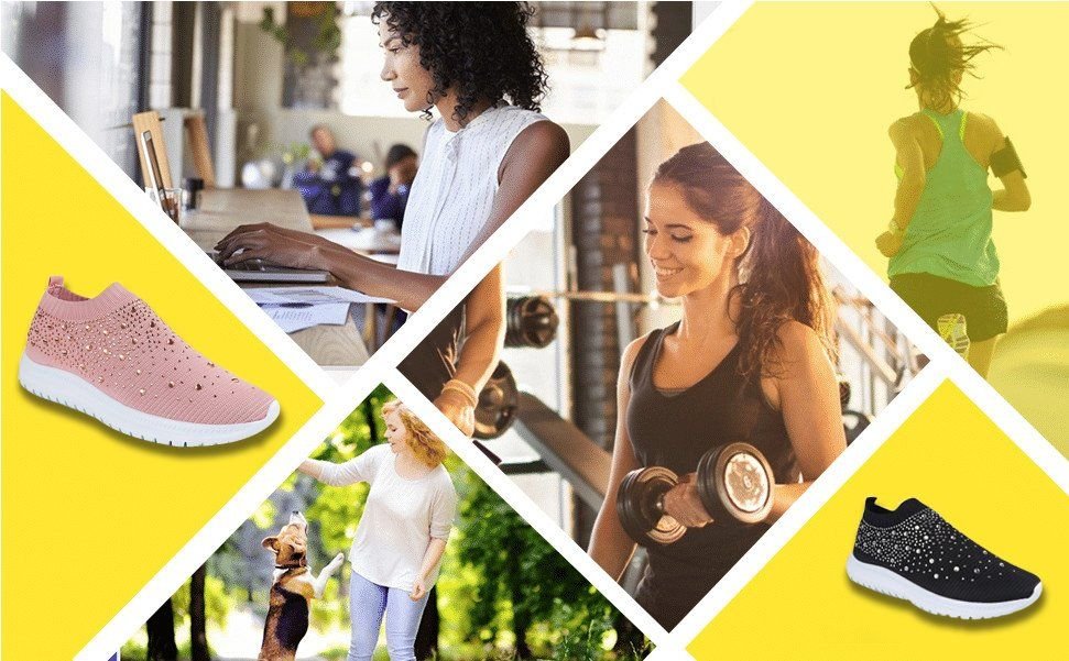 WALK ON CLOUDS ALL DAY WITH CRYSTAL BREATHABLE SLIP ON WALKING SUMMER SHOES